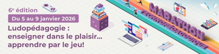 Participer au Marathon technopédagogique, c'est profiter d'une programmation intensive d'activités synchrones centrées sur un enjeu du numérique en éducation. Pour cette 6e édition, place à la ludopédagogie : jeux de rôle, jeux de société, jeux d'évasion, jeux vidéo, environnements immersifs, compétitions amicales, défis collaboratifs, et bien plus encore!