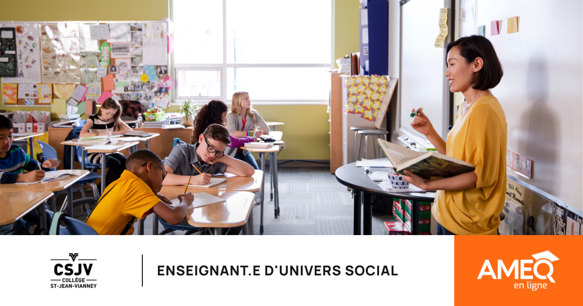 Nous recherchons un(e) enseignant(e) d'univers social pour pourvoir un poste pour un remplacement d’un congé de 6 semaines. (23 mars au 8 mai 2026)