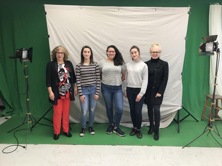 Sur la photo : Luz Fary Permodo Pinzon, enseignante, Alexandra Landry, Alexane Tallefer et Kelly Landry, étudiantes en Arts visuels et numériques, et Michelle Laforest, enseignante. Absents : Gabriel Awashish et Liam Awashish, étudiants en Sciences humaines, et Jérémy Nadeau, étudiant en Arts, lettres et communication