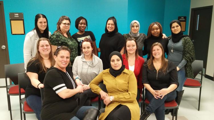 Les finissantes en Techniques de l'éducation à l'enfance (cohorte de Terrebonne) : 1re rangée : Sandra Couture, Asmaa Iarab; 2e rangée : Mélanie Yergeau, Vanessa Haince-Beaudin, Valérie Filion-Martin, Annick Dubois; 3e rangée, debout : Mélyssa Brochu, Véronique Quantin, Linda Aurelie Dihou Njomo, Josée Séguin, Souad Karouachi, Marysa Vilcinor, Leila Fathi; absentes : Julie Aubertin, Amélie Lépine, Émilie Thibaudeau.